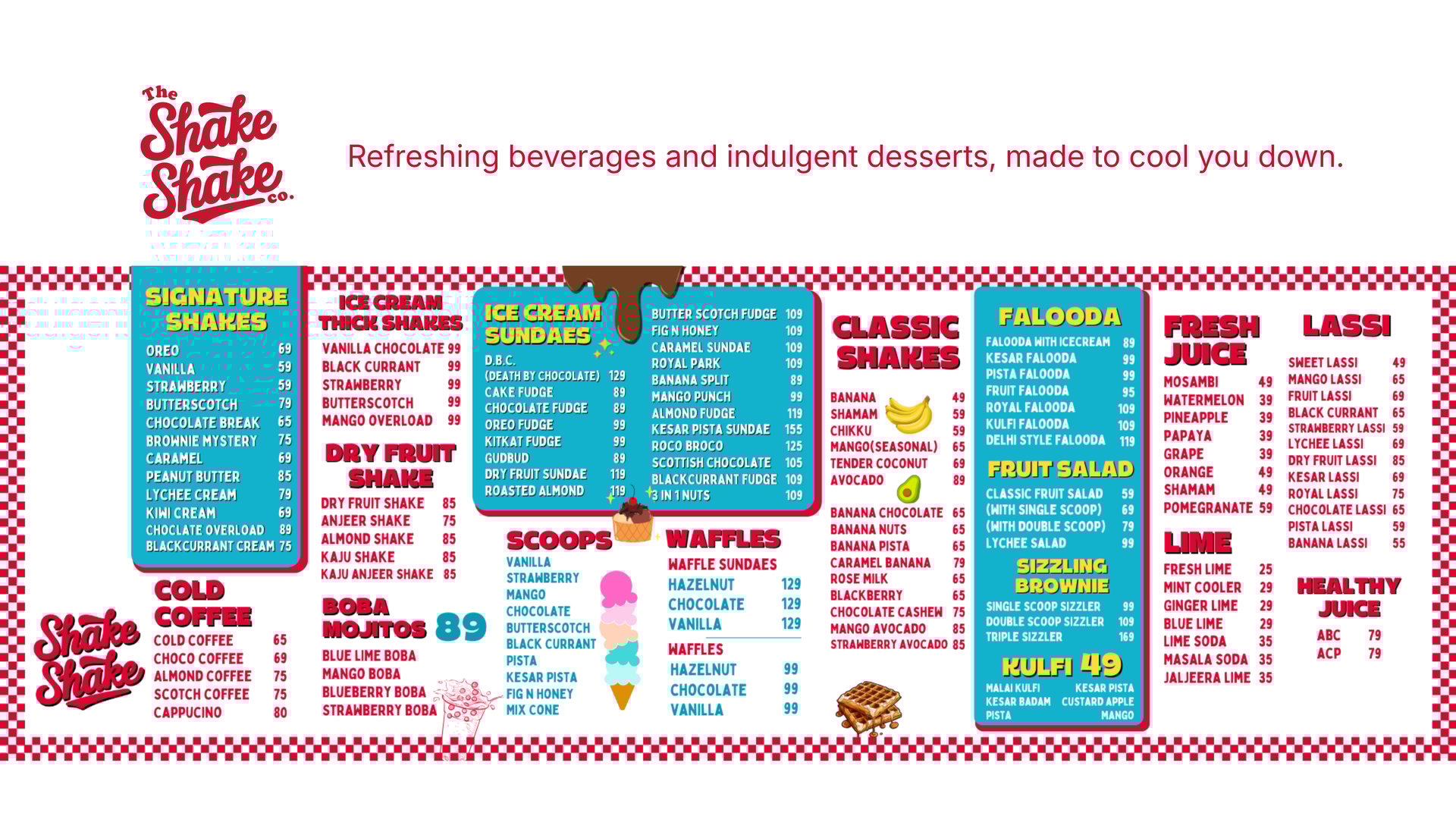 At the heart of our menu is Shake Shake, bringing you refreshing beverages and classic desserts.